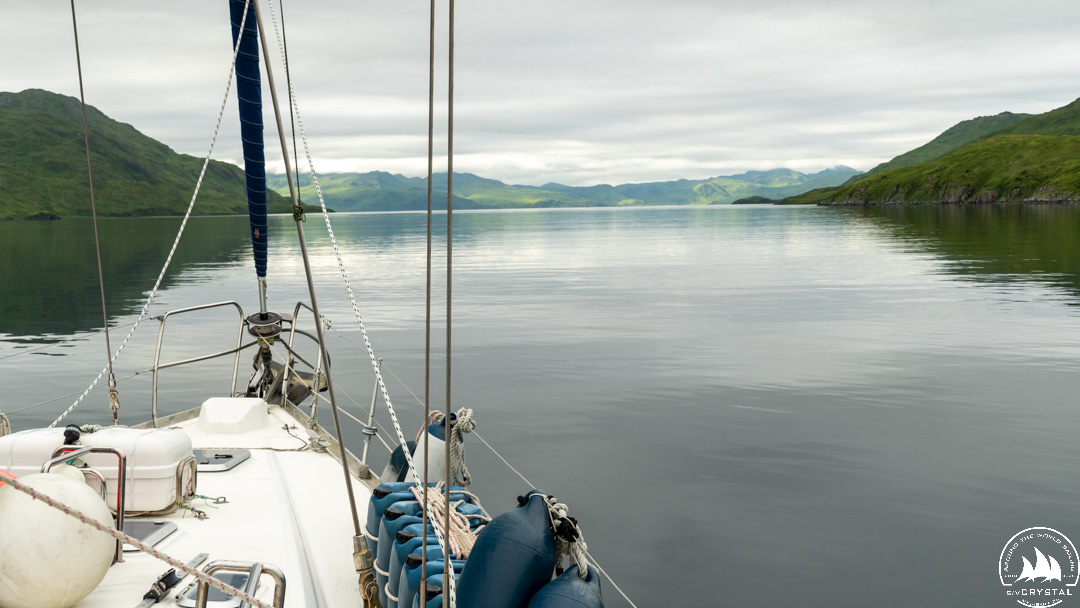 Tu mała dygresja odnośnie prądów na Aleutach. Przepływając pomiędzy wyspami z Pacyfiku na Morze Beringa albo odwrotnie trzeba zawsze zwracać uwagę, jaki prąd będzie w cieśninach. Prądy pływowe potrafią tu gnać z prędkością 9 węzłów! To jak górski potok i zdecydowanie za dużo dla małego jachtu. Na szczęście przewidzenie prądu nie jest bardzo skomplikowane. Przy rosnącym pływie woda wlewa się na Morze Beringa, a przy malejącym wylewa. Optymalnie wpasować się blisko wysokiej lub niskiej wody, kiedy to prąd jest najsłabszy.