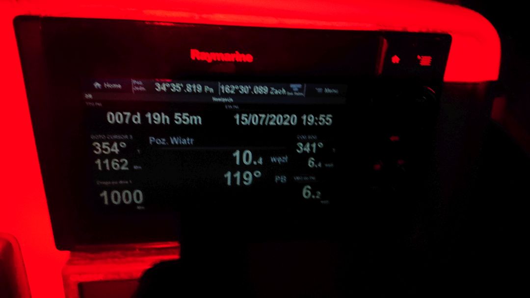 W środę chwilę po północy, po niecałym tygodniu żeglugi przepłynęliśmy nasze pierwsze 1000 mil w drodze na Alaskę. O godz. 7 rano, po dokładnie siedmiu dobach od startu, mieliśmy 1043 mile. Oznacza to średnio 149 mil na dobę. Do tego cały czas płyniemy jak po sznurku, czyli w dobrym kierunku. Oznacza to w praktyce, że z każdą przepłyniętą milą o tyle samo malała nasza odległość do celu. Jest to super wynik i jesteśmy bardzo zadowoleni. Lepiej po prostu być nie mogło.