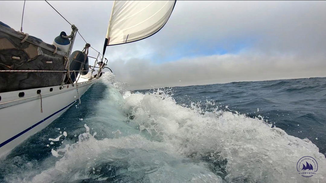 Niestety jednak wszystko co dobre się kończy. Zgodnie z prognozą wiatr w czwartek powoli zaczął słabnąć i odkręcać na południowy. Wreszcie po południu, żagle strzelały już nie do wytrzymania i odpaliliśmy silnik. Pewnie tak już zostanie do rana, kiedy to powinniśmy dotrzeć do celu.